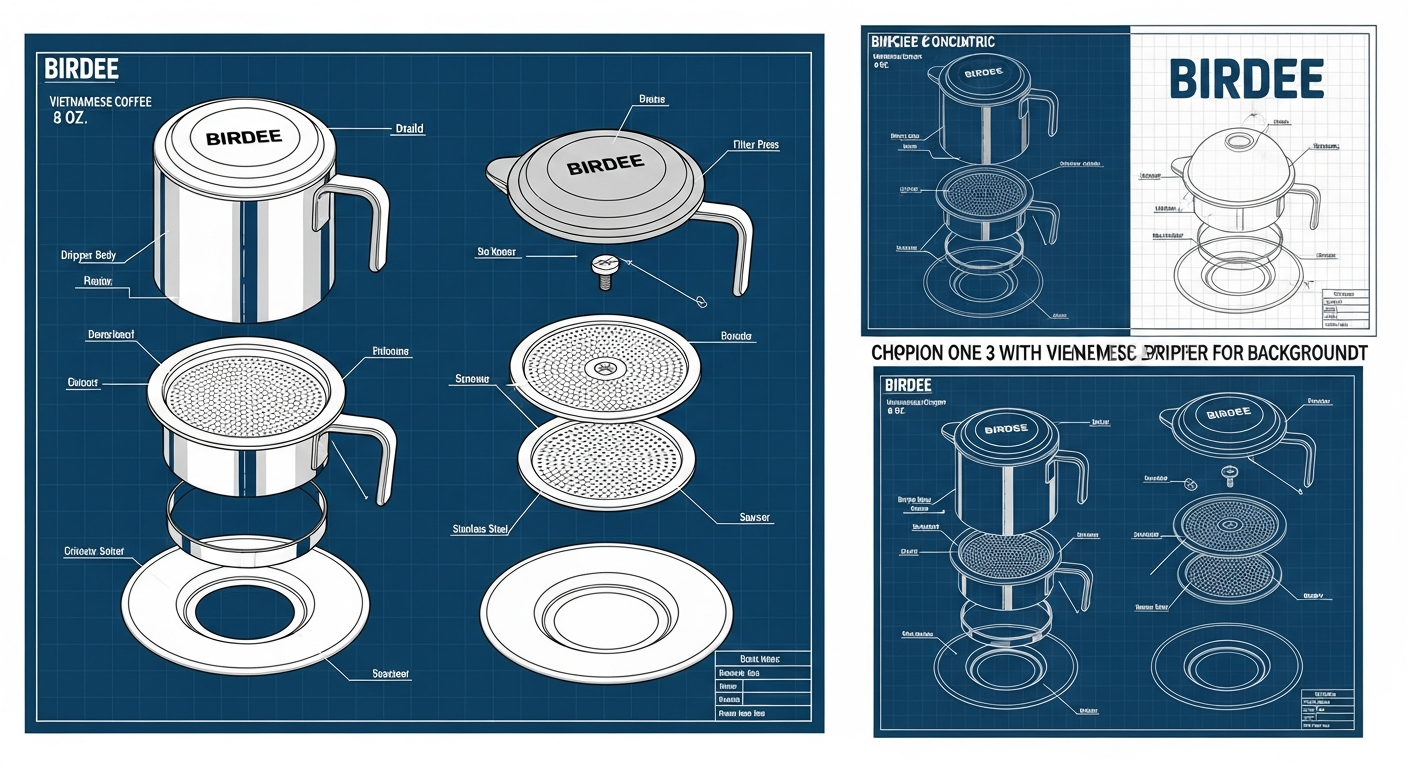このBirdeeのベトナムドリッパーは、その名の通り、ベトナムコーヒーの抽出に特化した器具である。構造は至ってシンプル。カップの上に直接設置し、挽いた豆を入れ、フィルタープレートで軽く押し固め、上からお湯を注ぐ。あとは滴下を待つだけだ。この構造は、特定のコーヒー文化に根差した抽出プロセスを物理的に再現するために設計されている。