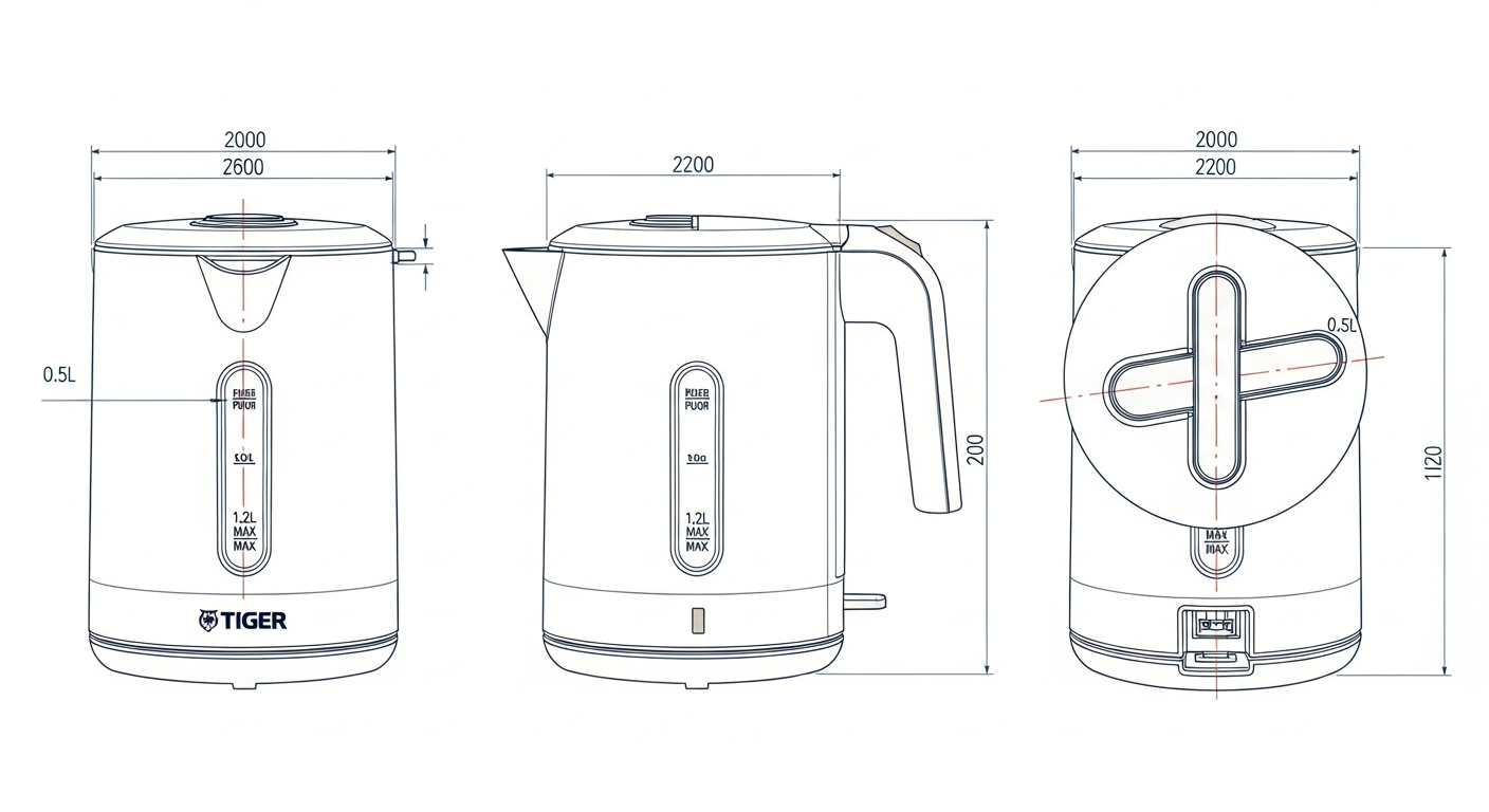 本体質量約1.0kgという軽量性は、満水時でも扱いやすい。また、コンパクトなサイズはキッチンの場所を取らず、日常使いの家電としては及第点だ。水量窓は湯量の目安となるが、これはあくまで「湯を沸かす量」の目安に過ぎない。第2軸(抽出比率)における精密な湯量管理、特に抽出時の注湯量コントロールには全く寄与しない。